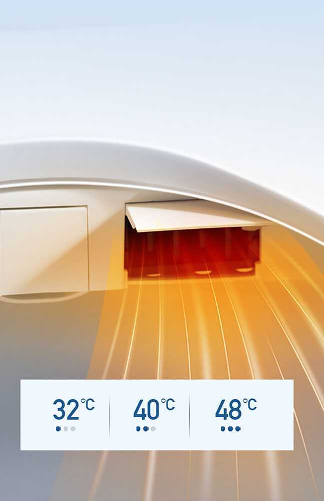 A Warm Seat, or heated toilet seat, is a feature designed for ultimate comfort. Built into smart bidets, this function gently warms the toilet seat to your desired temperature, ensuring a cozy experience, especially during colder months.The seat ring works on the principle of resistance heating, where electrical energy is converted into heat. When the seat ring is plugged into a power source, electricity flows through the coil, creating resistance. This resistance causes the coil to heat up as electrical energy is turned into heat. The heat then spreads from the coil to the surrounding area, warming up the object or device.